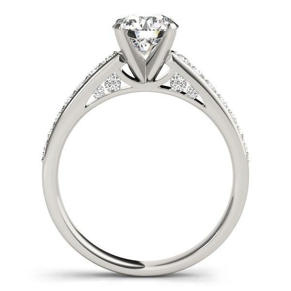 Wonderfully charming in 14k white gold, this round prong set diamond ring showcases a single row of shank stones.