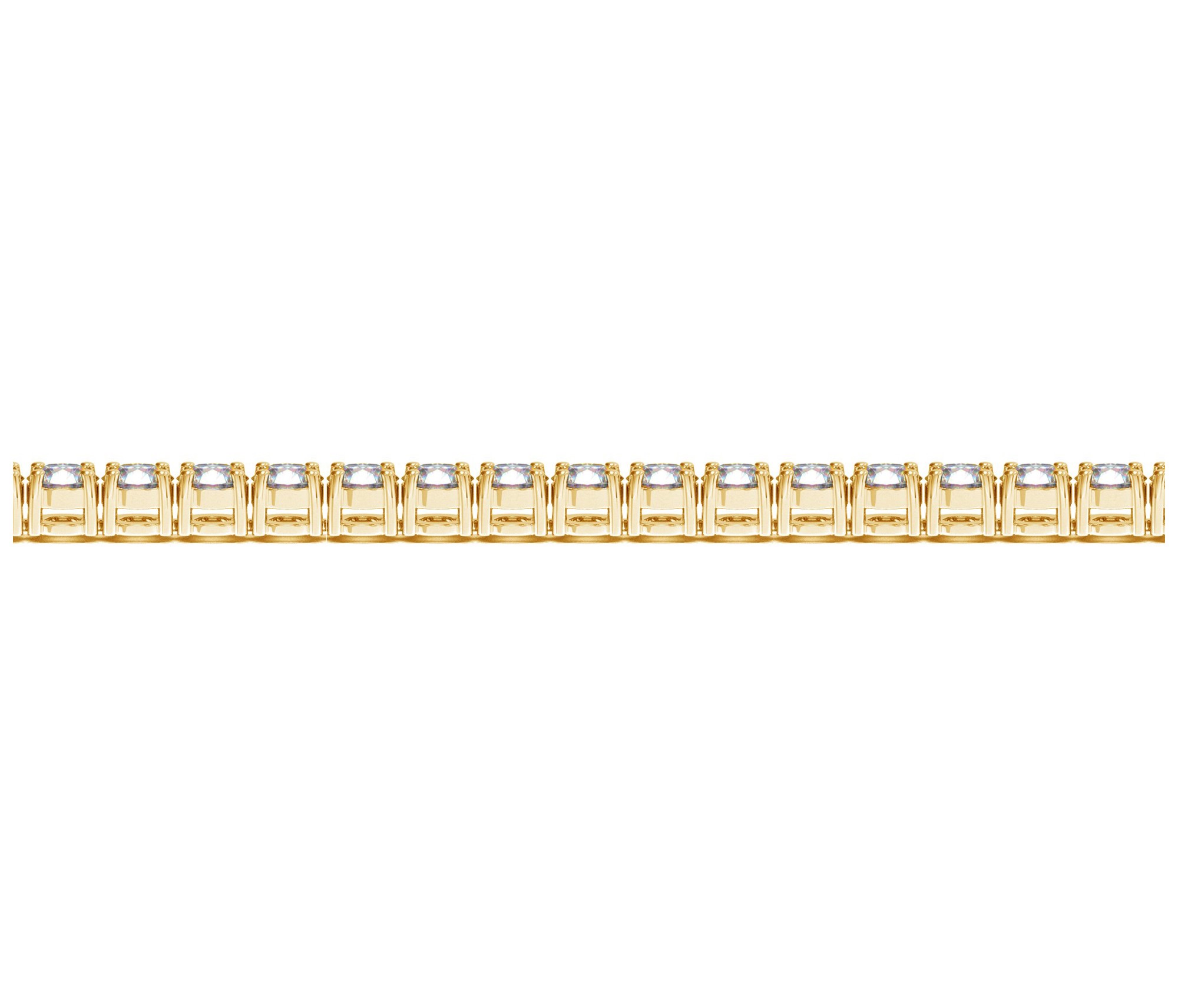 Classic four prong 8 carat total weight diamond tennis bracelet showcasing perfectly matched brilliant round cut lab grown diamonds set in 14k yellow gold.