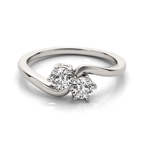 This two stone side by side diamond ring is perfect to symbolize your special union together. The polished curved band design highlights the elegant solitaire style. Made of 14k white gold.